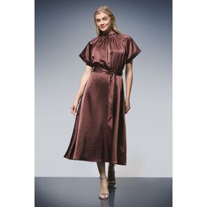 Principles Womens Gathered Neck Flared Skirt Satin Midi Dress - Chocolate - Size 16 Uk