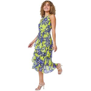Roman Petite Womens Tiered Tropical Print Midi Dress - Lime Green - Size 16 Uk | ✔ Check At Store | £50.00 |