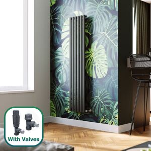 Elegant - 1600 x 360 mm Anthracite Vertical Column Radiator Double Oval Panel Designer Bathroom Radiator + Chrome Angled Radiator Valves