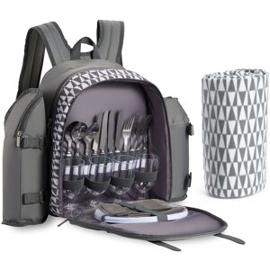 VonShef 4 Person Picnic Backpack with Full Dining Set and Blanket Grey One Size | ✔ Check At Store | £37.99 |