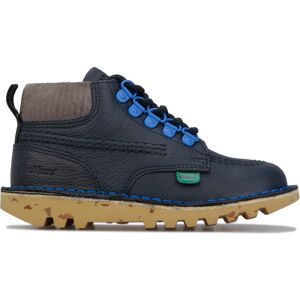 Children Boys Kickers Kick Hi Core Boots in navy - white - natural.- Durable leather uppers.- Lace closure.- Classic triple stitch detail.- Padded collar.- Comfortable leather lining and leather-lined sockliner.- Iconic Kickers fleurette and tabs.- Kickers branding at tongue and side heel.- Durable rubber outsole.- Leather upper Leather lining Rubber sole.- Ref: 1-KF0000408NDA