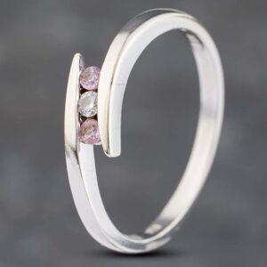 Pre-Owned 9ct White Gold Pink Sapphire & 0.03ct Diamond Crossover Three Stone Ring 41383083 | ✔ Check At Store | £150.00 |