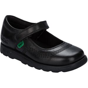 Children Girls Kickers Fragma T-Bar Patent Shoes in Black- Hook and loop strap fastening- Shiny patent leather upper- Classic triple stitch detail- Iconic red and green logo tabs- Ridged rubber sole for traction and durability- Embossed branding to side- Leather Upper Textile Lining Synthetic Sole- Ref: 115178