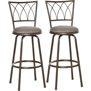 Inject beautiful and chic style into your kitchen counter or bar dining area with the kitchen stools with backs from HOMCOM. In a set of two, you'll instantly create a matching look in the home. The seat comes in a with-back, 360° swivel and gas lift design allowing you to sit comfortably. Skin-friendly PU material upholstery of the adjustable stool serves up high style. Additionally, the steel frame is powder coated to ensure they can accompany your family reliably.Features:Packaged in a set of 2 for a matching lookThe curved design and diamond pattern of the seat can perfectly support your body and look stylishThe seat is covered by wax-feeling PU, which serves up high style and easy maintenanceSeat height is adjustable from counter height to bar height by gas liftSwivel seat ensures 360 degrees free rotationFootrest prevents legs from dangling aroundPowder-coated steel frame keeps balance, attached non-skid rubber padsAssembly required