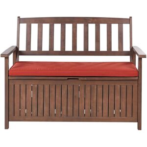 Outdoor Bench with a Seating Cushion. Enhance your outdoor surroundings with this capacious wooden bench, made from durable acacia wood. Its classic, rustic-inspired style makes it a perfect addition to any outdoor area. Accommodating up to three people, this bench is the perfect companion for hours of rest and relaxation in your garden, patio or terrace. The included seat pad contributes to the additional seating comfort. Details: Product Type: Bench Style: Traditional General Color: Brown, Red Shade: Dark Red Material Type: Wood Main Material: FSC® Certified Acacia Wood Additional Material: Fabric Material Composition: 100% Polyester Seat Foam Density: 18 kg/m3 Seats Up To: 3 People Dimensions: Armrests Height: 20 cm Depth: 61 cm Seat Thickness: 5 cm Seat Height: 45 cm Width: 160 cm Height: 88 cm Seating Surface: 152x54 cm Weight: 20 kg Weight Capacity per Person: 160 kg Offer Includes: 1 x Seat Cushion, 1 x Bench Key Features: Practical Ties to Ensure a Secure Attachment,