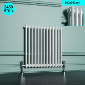 Elegant - Horizontal Radiator with White Double Column 600 x 592 mm Traditional Cast Iron Style