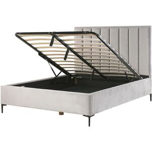 Bed Frame with Shell Headboard. Meet the bed that you dreamed of. This velvet upholstered beauty in a retro-inspired look will be the statement piece of any bedroom. Complete with gold hairpin legs and channel tufted shell headboard, it will introduce a glam feel to the interior. The bedhead is winged, creating a cosy space for watching your favourite shows or nighttime reading. The set also includes a slatted base that ensures a stable support for a mattress. Details: Product Type: Double Bed Style: Retro General Color: Beige, Gold Shade: Light Beige Material Type: Fabric Main Material: Velvet Additional Material: Plywood Material Composition: 100% Polyester Fabric Upholstered Back: No Dimensions: Headrest Dimensions: 141x106 Width: 157 cm Length: 214 cm Height: 126 cm Sleeping Surface: 140x200 cm Weight: 52 kg Weight Capacity: 250 kg Offer Includes: 1 x Bed Frame, 1 x Slatted Frame (30 Sprung Slats), Not Included: Mattress, Bedding and Cushions Key Features: Shock-absorbing Slatted