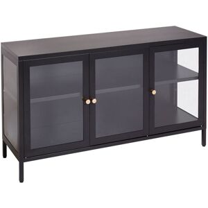 Capacious Highboard Cabinet. Add an industrial touch to your living room or bedroom with this practical sideboard. Made from durable MDF, the piece boasts a finish which beautifully shows off natural grain and knots of wood. The cabinet stands on a durable metal base in grey which gives it a minimalist vibe. The featured four capacious shelves will help you to organize your space and unclutter your home. Details: Product Type: Sideboard Style: Modern General Color: Brown, Grey Material Type: Wood Main Material: MDF Additional Material: Iron Legs material: Metal Top Material: Engineered Wood Doors Opening: Standard Drawers: No Finish: Veneered Leg Caps/ Pads: No Number of Doors: 3 Shelves: Yes Dimensions: Depth: 42 cm Width: 140 cm Height: 79 cm Weight: 44 kg Shelf Weight Capacity: 15 kg Top Weight Capacity: 45 kg Offer Includes: 1 x Sideboard Key Features: Well-Suited for Variety of Home Decor, Wood-like Finish for Natural Look, Exceptionally Low-Maintenance, For Best Care, Protect