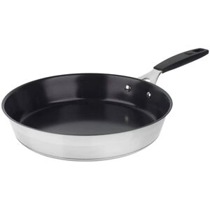 Product Description: A great frying pan is a must have for your kitchen. This 28cm diameter Silver Frying Pan from the MasterPro Smart range will help bring out your creative cooking side. The stylish, elegant fry pan is made of forged aluminium for enhanced heat distribution, and is crafted to last a lifetime. The non-stick Fusion HR healthy ceramic interior coating prevents food from sticking, making it so easy to cook with and clean. The stay-cool silicone handle gives you a safe and comfortable grip while you fry. Suitable for use on most stovetops except induction hobs. The modern silver and black look will match your kitchen design. Features: • Dot induction base gives even, steady heat distribution with no hot spots • Non-stick Fusion HR ceramic interior coating prevents food from sticking • Stylish silver metallic exterior to match most kitchen decor • Stay cool, black silicone handle for comfort and a safe grip • Can be used on most cooking hobs except induction • Hole in the handle for hanging storage Specifications: • Size: W28 xH6 x D47cm • Pan material: forged aluminium for even heat distribution • Handle material: stainless steel with black silicone grip • Pan coating: reinforced Fusion HR ceramic • Forged aluminium provides corrosion resistance • Suitable for most stovetops except induction • Colour: silver and black • Oven safe: No • Dishwasher safe: No. Hand wash only • Hanging hole: Yes Additional Information: Designed with practicality and durability in mind, the MasterPro Smart collection presents a combination of innovative features and premium materials enabling you to enjoy everyday cooking in any space. Order today and get frying with the finest!