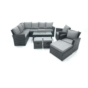 Set Dimensions: 1 x Big footstool 65L x 65W x 34H cm 2 x Small fully assembled footstools 40L x 40W x 34H cm 2 x Chair: 74W x 69D x 79H cm 1 x 3 seater sofa with two arm : 170L x 69D x 79H cm 1 x 3 seater sofa with single arm: 160L x 69D x 79H cm Dark grey mixed rattan with dark grey fabric .Color may some difference due to light or monitor .we are unable to return the item due to color problem . Items Comes Flat Packed And Easy Assemble, Sturdy Galvanized Steel Tube Metal Frames With Powder Coating To Prevent The Rust Fimous 11 Seat Rattan Garden Furniture Corner Sofa Set Outdoor Patio Sofa Chair Table Set in Dark Grey