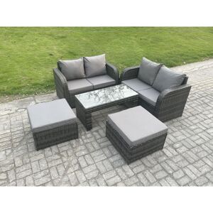 This deluxe rattan sofa set is a great addition to patio or garden, made of high quality PE rattan and durable galvanized steel construction for sturdiness and long lasting.Durability ,and can be put outdoor all year round. Perfect set to sit round with your family and friends. Set Dimensions: • 2 x Big Footstool size:65L x 65W x 34H cm • 2 x Love Sofa Size: 124W x 67D x 79H cm • 1 x Oblong Coffee table: 105L x 50W x 48H cm Dark grey mixed rattan with dark grey fabric .Color may some difference due to light or monitor .we are unable to return the item due to color problem . Items Comes Flat Packed And Easy Assemble,Sturdy Galvanized Steel Tube Metal Frames With Powder Coating To Prevent The Rust Flat PE Rattan Completely Made By Hand, 5mm Thickness transparent Tempered Glass With Sucker On Surface To Prevent Sliding Low Maintenance ,Removable Cushion Cover And Easy Move To Different Place.Pls Keep the Cushion Indoor Or put on With Rain Cover When Not In Use . Keep The Furniture With