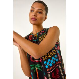 Holiday Print Vest Top by Roman UK Get into the vacation spirit with this holiday print vest Featuring a playful allover print this sleeveless round neck vest has charming gathering detail at the neckline The v neck back with a tie back at the neckline adds an extra touch of style Pair with jeans and sandals for an effortlessly casual and fun look under the sun Womens Regular fit True to size 86 Viscose 14 Polyamide Machine Washable Length Approx 67cm 86 Viscose 14 Polyamide