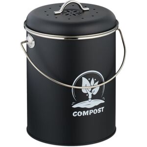 Relaxdays - Kitchen Compost Bin, 5.5 Litres, Iron, Odour Filter, with Lid & Handle, Organic Food Waste Caddy, Round, Black