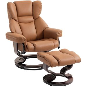 MHSTAR UK LTD HOMCOM 360�� Swivel Recliner Chair with Footstool, PU Leather Manual Recliner Armchair with Footstool, Solid Wood Base, Upholstered Reclining Chai