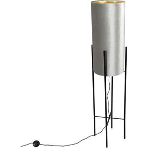 Qazqa - Modern Floor Lamp Black with Velvet Grey Lampshade - Rich | ✔ Check At Store | £63.95 |